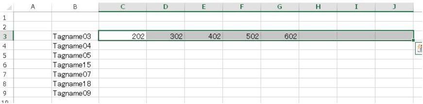 - C4:J9までコピーします。Tagname15、Tagname18は参照する検索範囲内に存在しませんのでブランクになります。