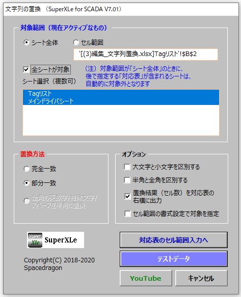 - オプションは、Excelのオリジナル置換機能(完全/部分一致、大小文字等)に準拠しています。